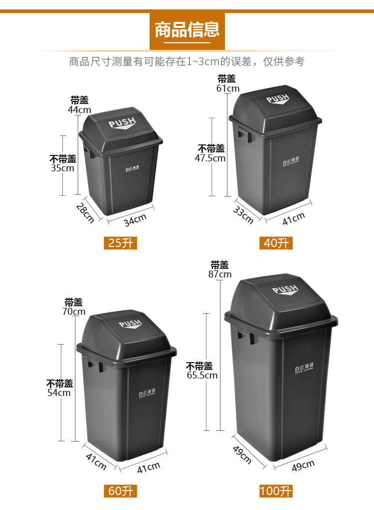 白云清洁60L垃圾桶AF07307 AF07308 AF07309