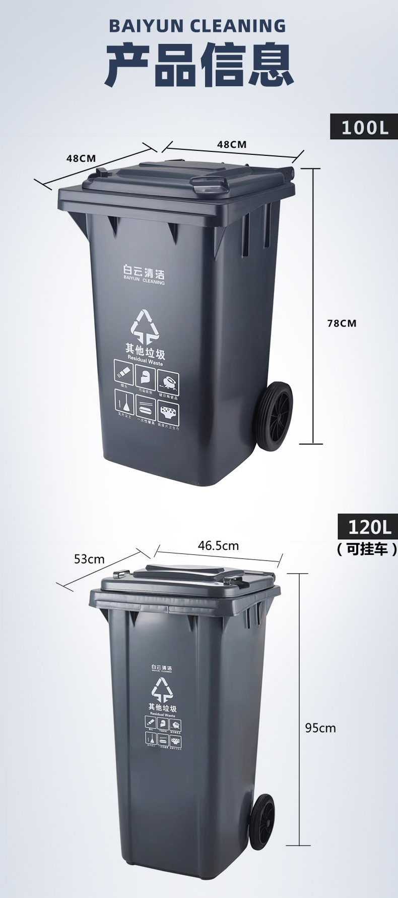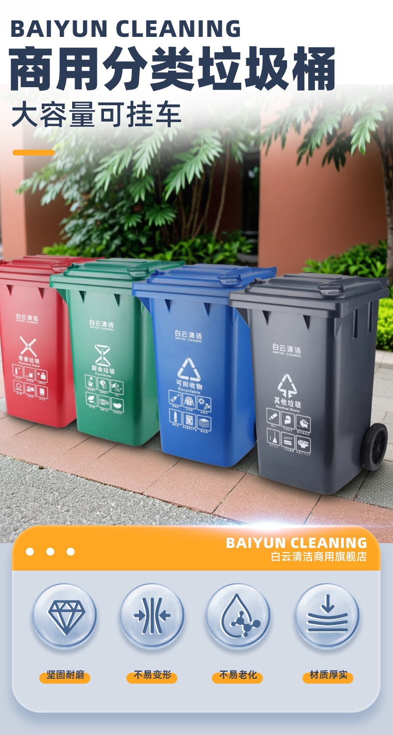 白云清洁大容量可挂车商用分类垃圾桶AF07321 AF07321A