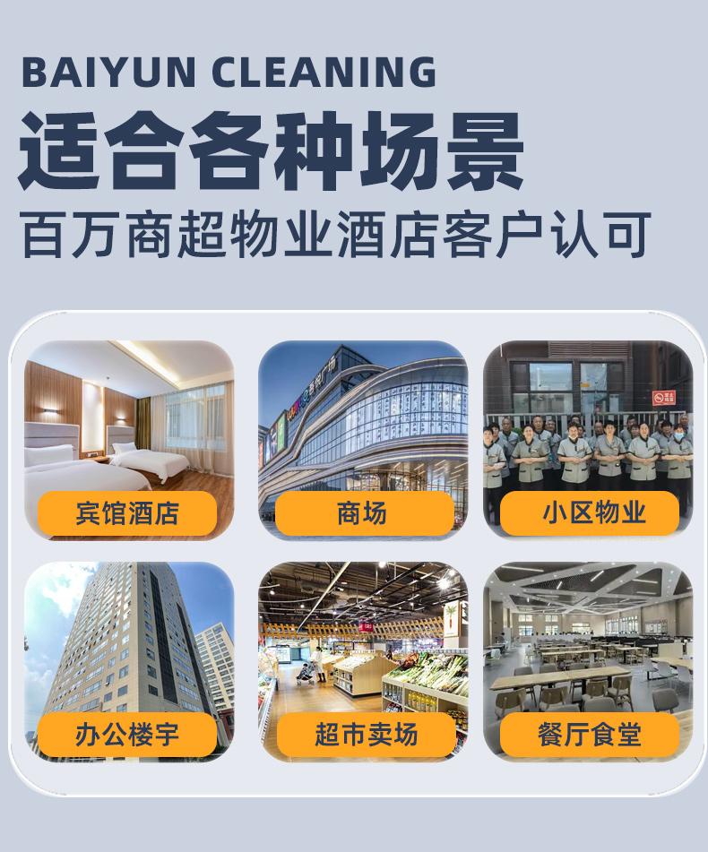 【白云清洁集团官网】是一家集技术研发、生产、销售于一体的企业。公司主要研发生产销售洗地机系列产品、吸尘吸水机、吹风机、清洁工具、客房用品、清洁剂等